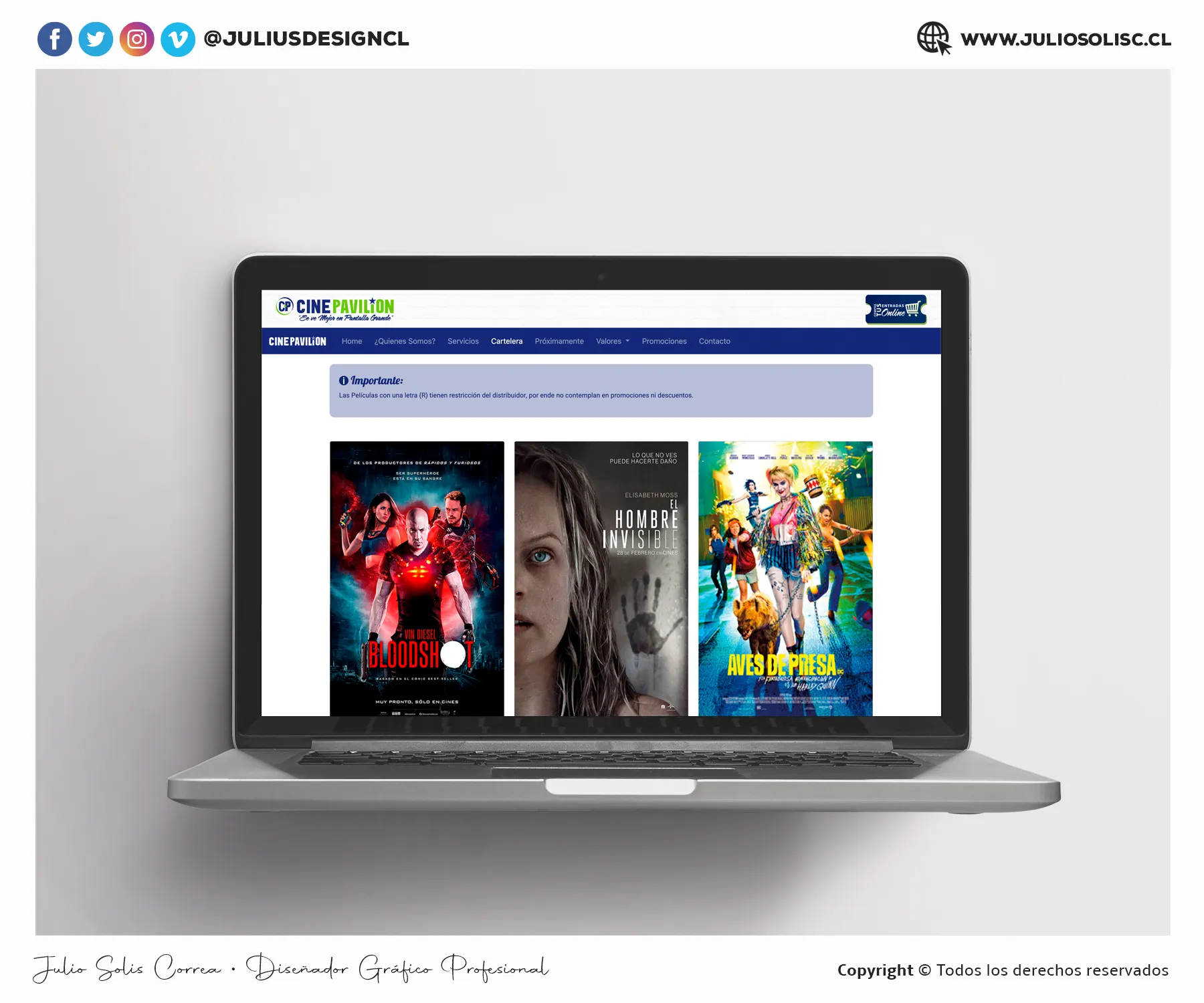 Hola, mi nombre es Julio Solís Correa soy ex-alumno del Instituto Profesional Duoc Uc, sede san Carlos de Apoquindo, en donde me encuentro en estos momentos titulado y ejerciendo esta hermosa carrera con más de 12 años de experiencia en el rubro. Dentro de toda mi formación académica logre aprender los distintos manejos de los diferentes programas de Diseño, tales como programas de edición, animación y desarrollo de sitios web, todo esto con el fin de crear diferentes gráficas, para que de esta forma poder resolver las necesidades de mis posibles clientes. A lo largo de todo este proceso aprendí el sentido de la Responsabilidad, Constancia, Motivación y Nunca Rendirse, de esta forma crecer día a día como un profesional capacitado en el área.